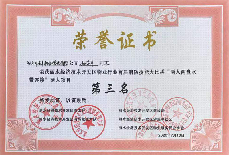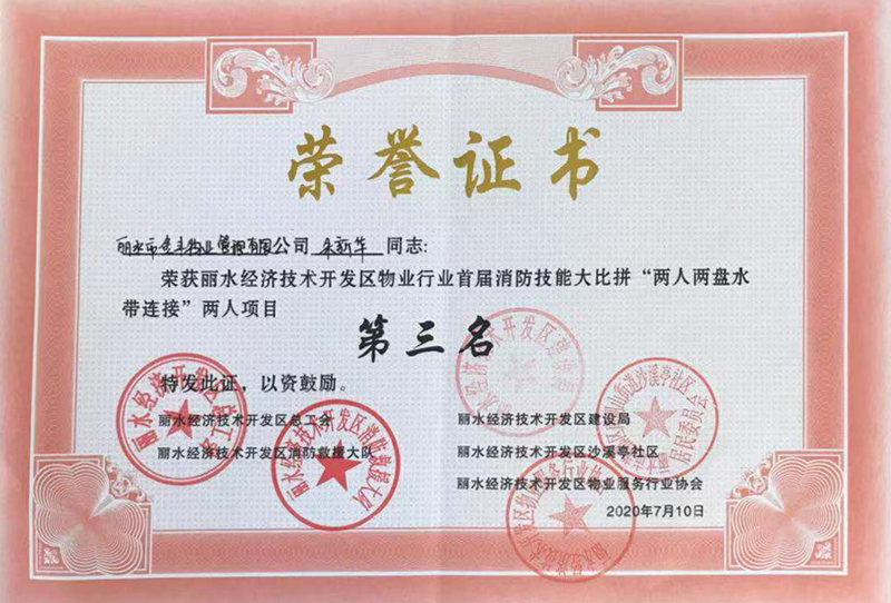 首屆消防技能大比拼“兩人兩盤水帶連接”第三名 2020-07-23 17:45:19 35 上一篇 : 首屆消防技能大比拼“室內(nèi)消防栓出水救火操”第三名 下一篇 : 先進(jìn)物業(yè)服務(wù)企業(yè)